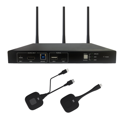 Wireless connection between your laptop and room USB peripherals like camera, mic, speakers for easy video conference